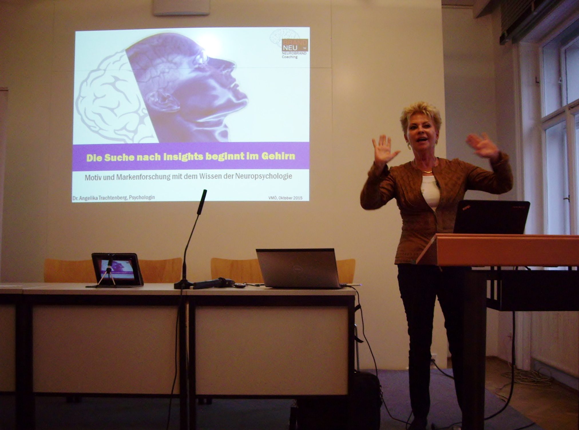 Angelika Trachtenberg ist Spezialistin auf den Gebieten der NEUROSciences / des NEUROBranding und betonte, dass die Suche nach Insights im Gehirn beginne. Ohne die Erkenntnisse der Neurowissenschaften würde die klassische Marktforschung auf der expliziten Ebene bleiben, weil KonsumentInnen für ihre Beweggründe für den Kauf eines Produktes verbal keine Auskunft geben können. Implizit emotionale Ziele steigern die Angebotsrelevanz und müssen auch durch implizite Tools erforscht werden: Messung der Reaktionszeit, apparative Verfahren, projektiv-kreative Fragen oder innovative Kombinationen stehen hierbei an erster Stelle. Frau Trachtenberg betont auch die Wichtigkeit bzw. die „geheime Macht” von Codes und leitete damit auch zum Vortrag von Charlotte Hager, comrecon, über.