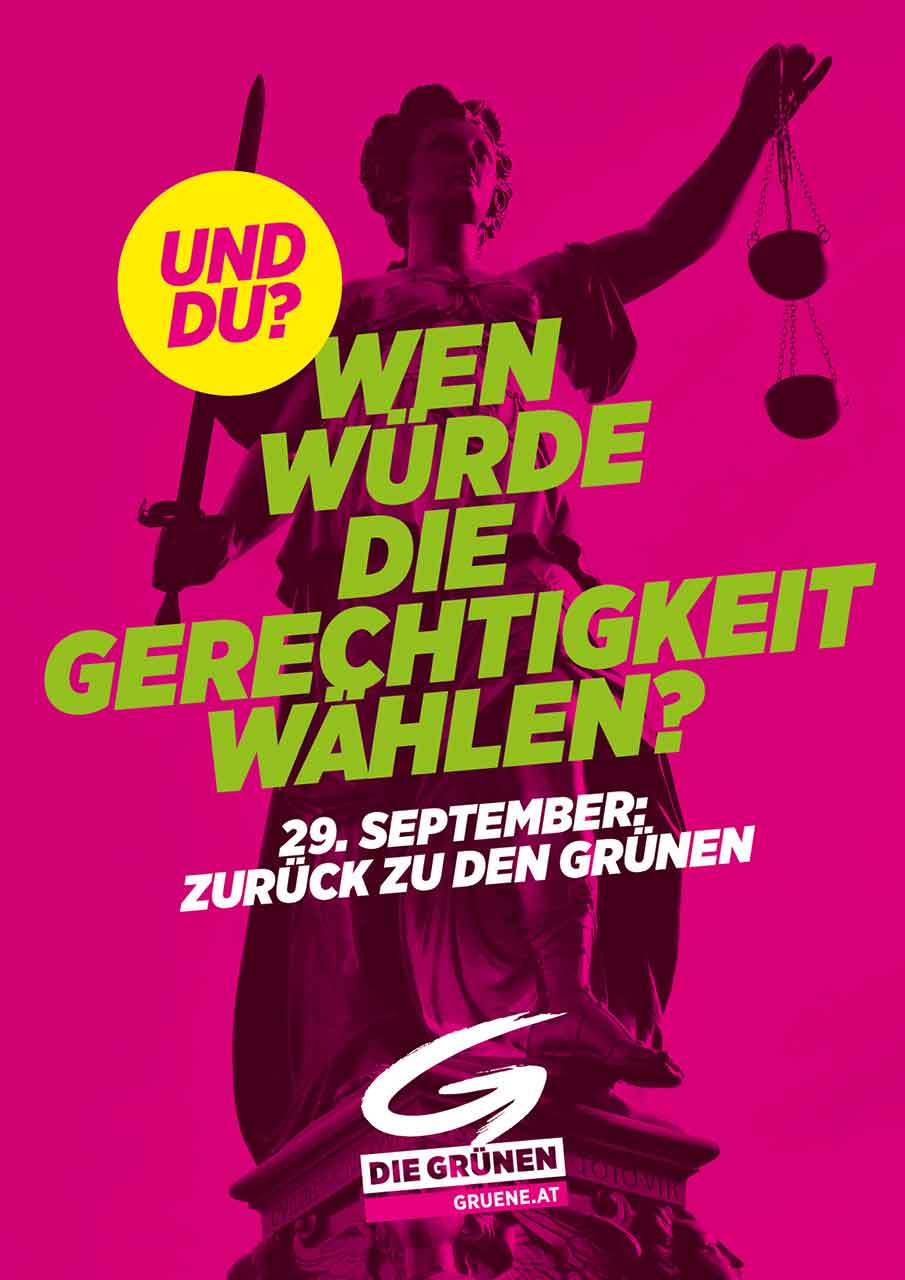 Werner Kogler als Spitzenkandidat präsentiert sich in einer Körperhaltung der Bereitschaft und Ernsthaftigkeit. Mit dem Text schaffen Die Grünen etwas außerordentlich Cleveres: Die Frage „Was würde … wählen“ ist eine projektive Frage, nahezu hypnotisch. Sie führt uns aus unserer engen Denke heraus und lässt uns die Dinge anders betrachten. Nämlich aus der Sicht des Klimas zum Beispiel. Die Buntheit und die knalligen Farben auf den Plakaten machen dies jedoch wieder kaputt. Schwere Lesbarkeit und Entschlüsselung der Bildbotschaft machen dem Betrachter die Entschlüsselung schwer.